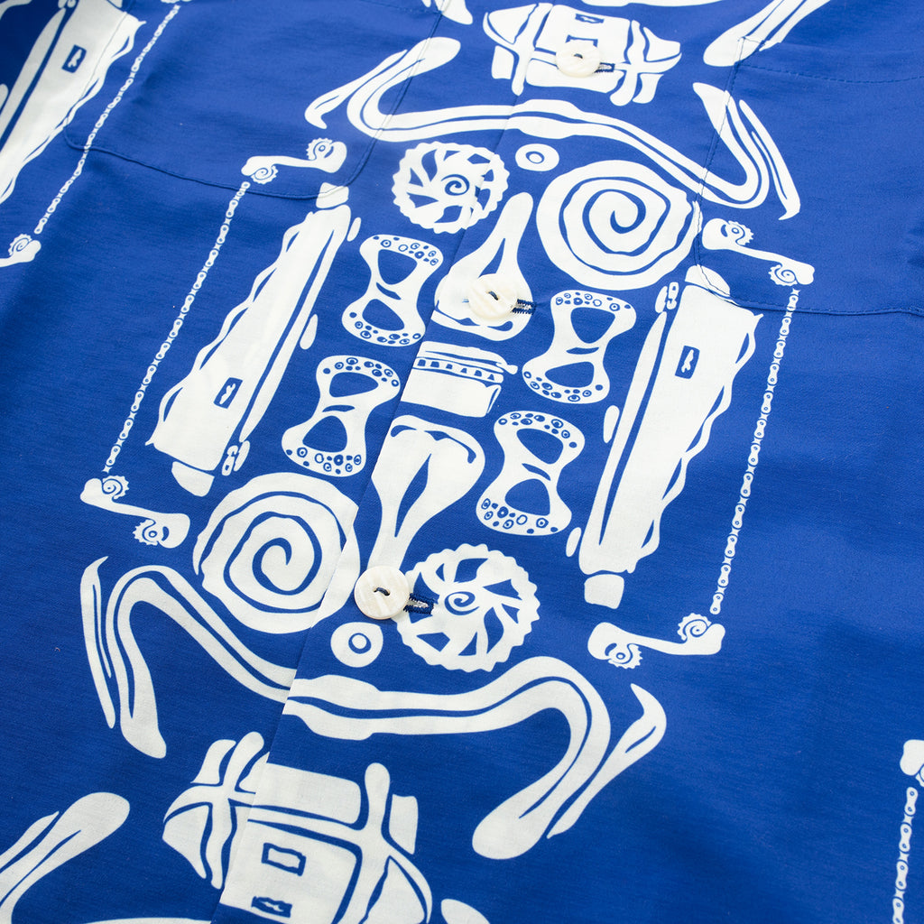 今回は19周年を記念して自転車を感じる大柄のアロハをオーダー。もう1着は誰でも着やすいデザインを選びました。[SPEC]