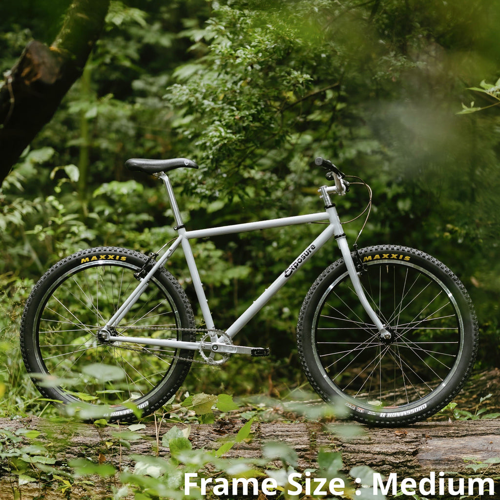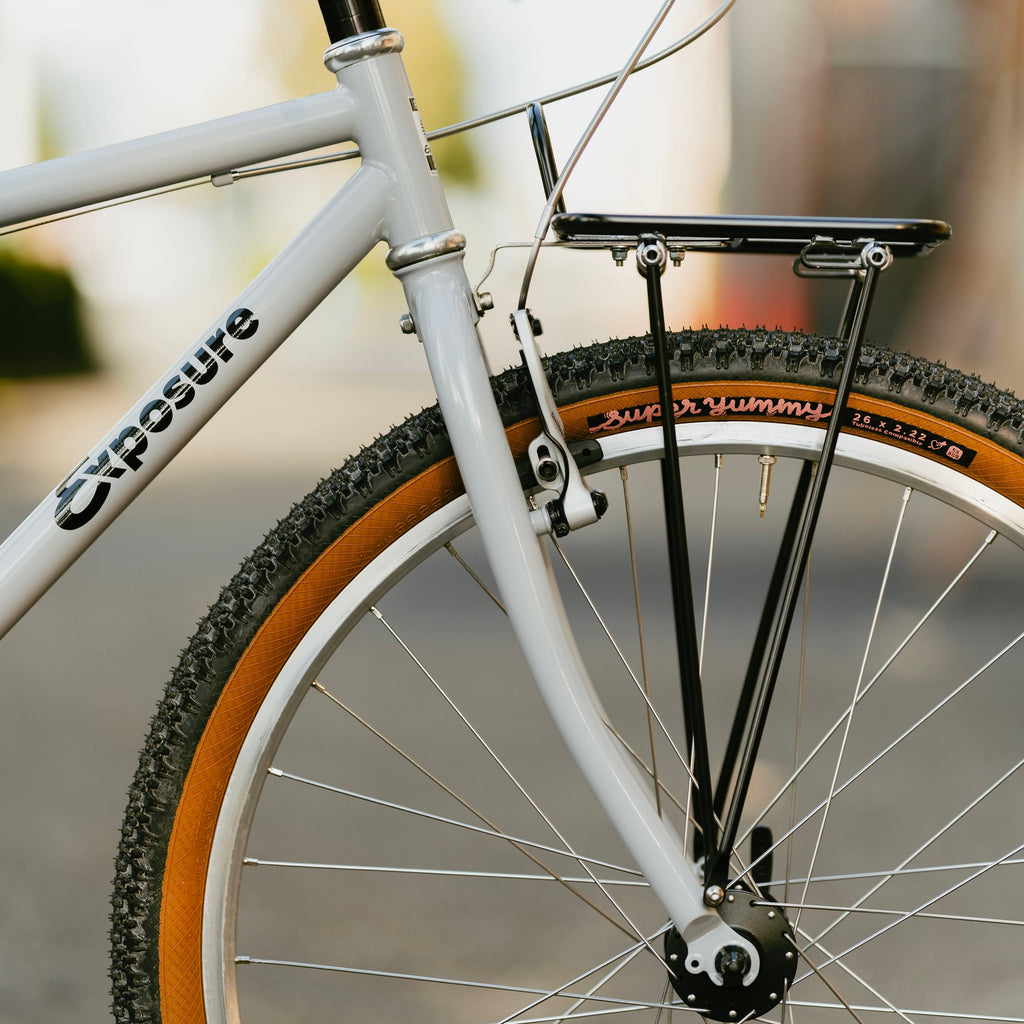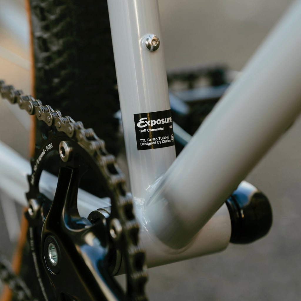 仕様といえば、壊れにくく頑丈なクロモリチュービングとトラックエンド。このバイクに必要なのは、あなたのペダルを踏む意思と、自由な想像力。街を抜けてトレイルへ。アスファルトからダートトラックまで。RAL Exposureは、自分の脚とアイデアだけで駆動するトレイルコミューターです。(あと、ちょっとしたおまけが付属します。)