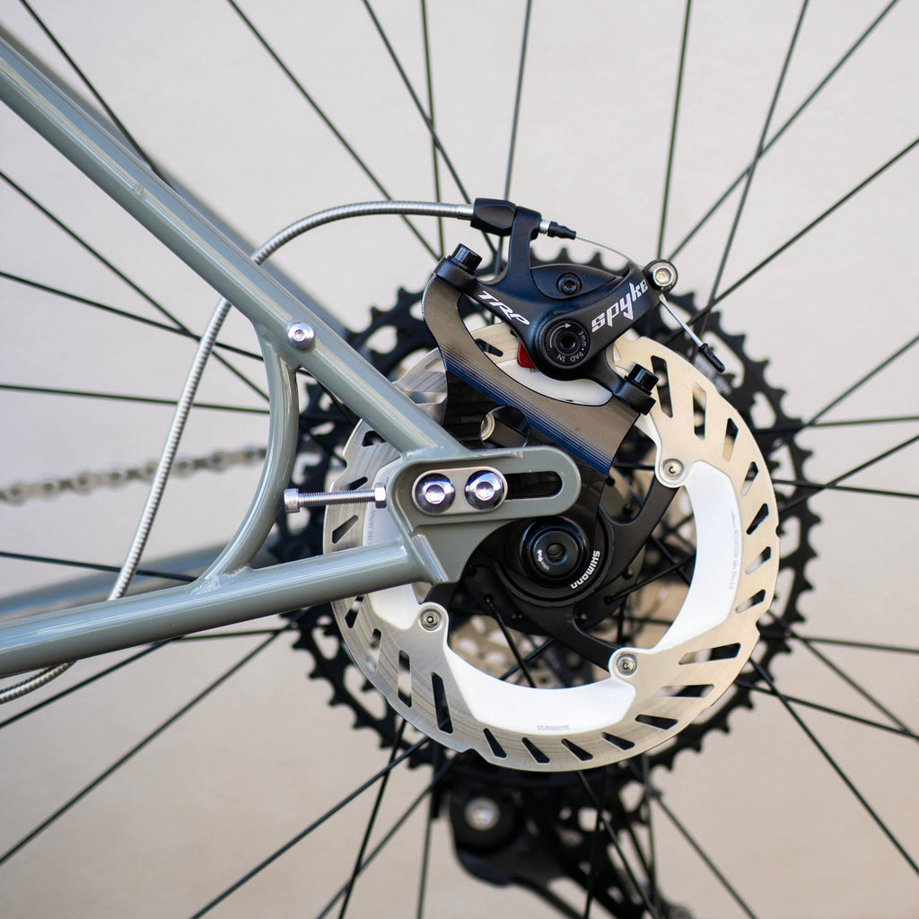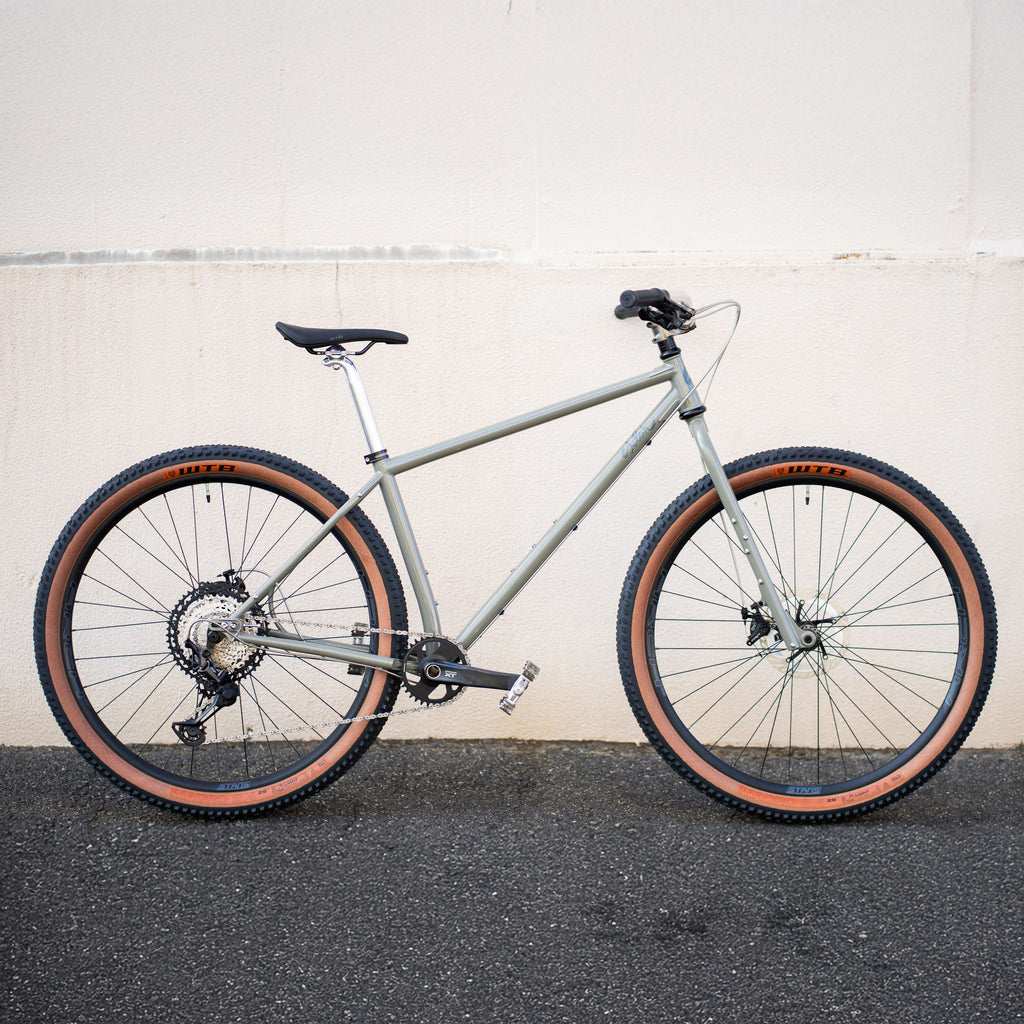 そんなPBJをサークルズ的な解釈でオリジナルコンプリートバイクとしてアッセンブル。非常に高い走破性と快適さを持つバイクパッキングやツーリングバイクとして楽しめることをメインコンセプトに、バッグなど余分なものを外せば、スピード感のあるトレイルや街中のクルージングも楽しめるように。